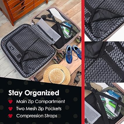 - DURABLE: Travel luggage bag features a hard shell ABS plastic case which protects your luggage and is easy to spot clean; hardside luggage is an officially licensed Disney product