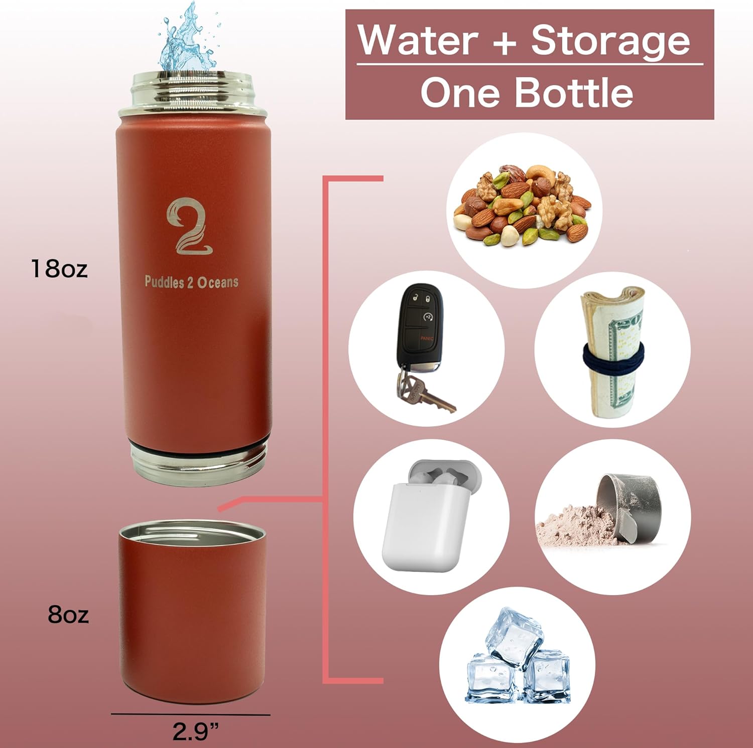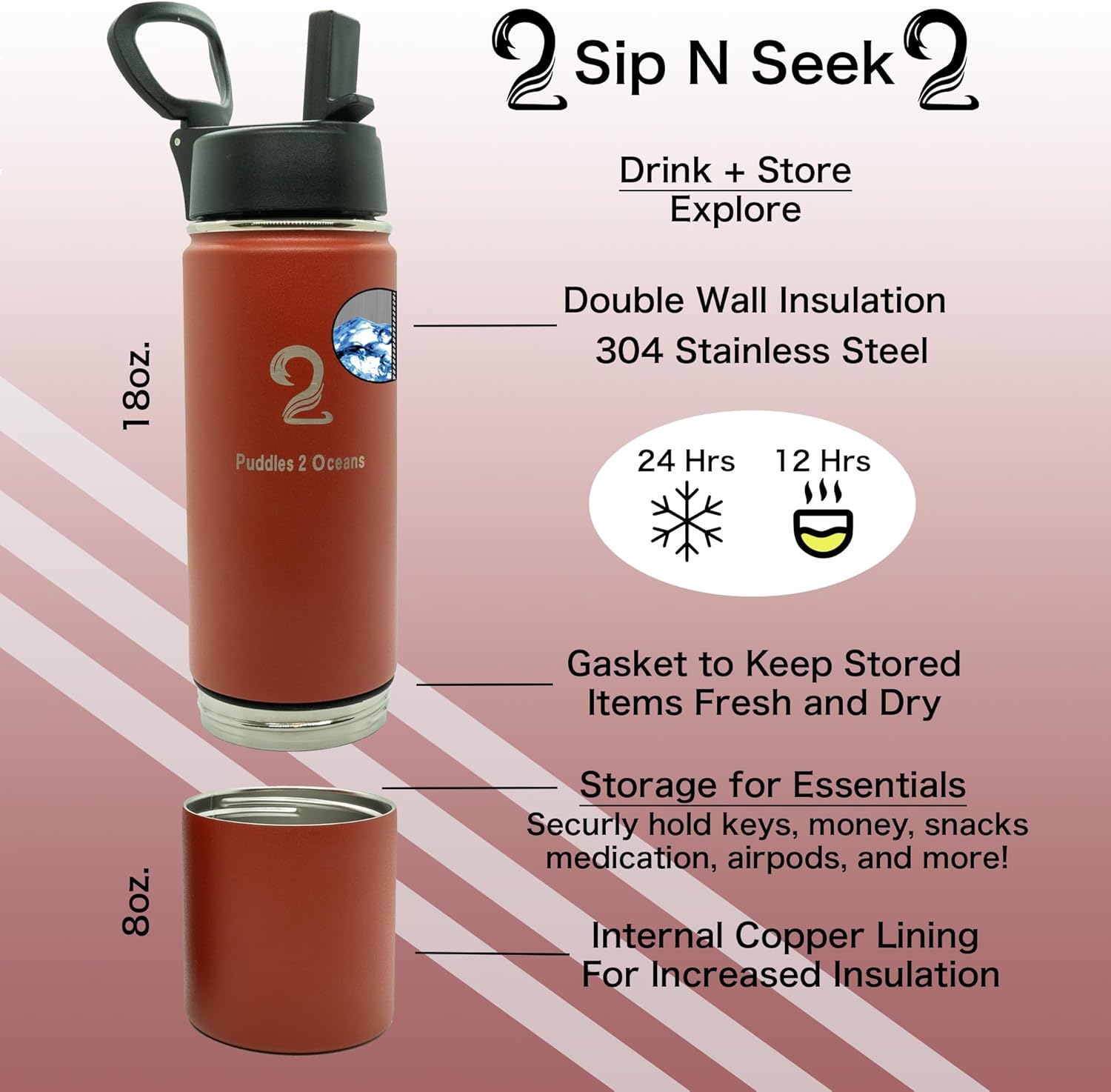 Whether you’re hitting the trails or heading to work, our Insulated Water Bottle & Snack Container is the perfect solution for staying hydrated and satisfied throughout your day. Upgrade your hydration game today with this versatile and stylish water bottle.