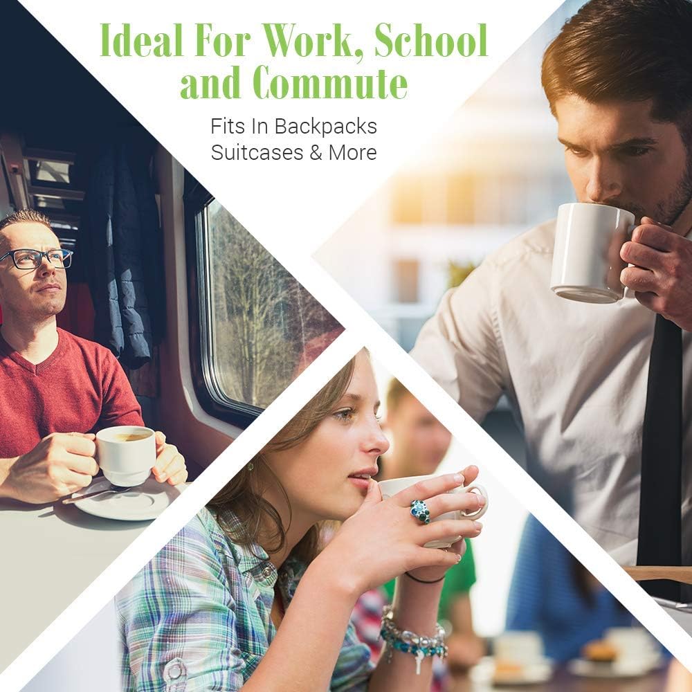 The mini travel coffee maker is designed to be small and compact, making it easy to pack in your bag or luggage. It brews a single serving of delicious coffee in just minutes, ensuring you can enjoy a fresh cup whenever and wherever you are. The included 15 oz. travel mug coffee tumbler is the perfect companion, keeping your coffee hot and delicious for hours.